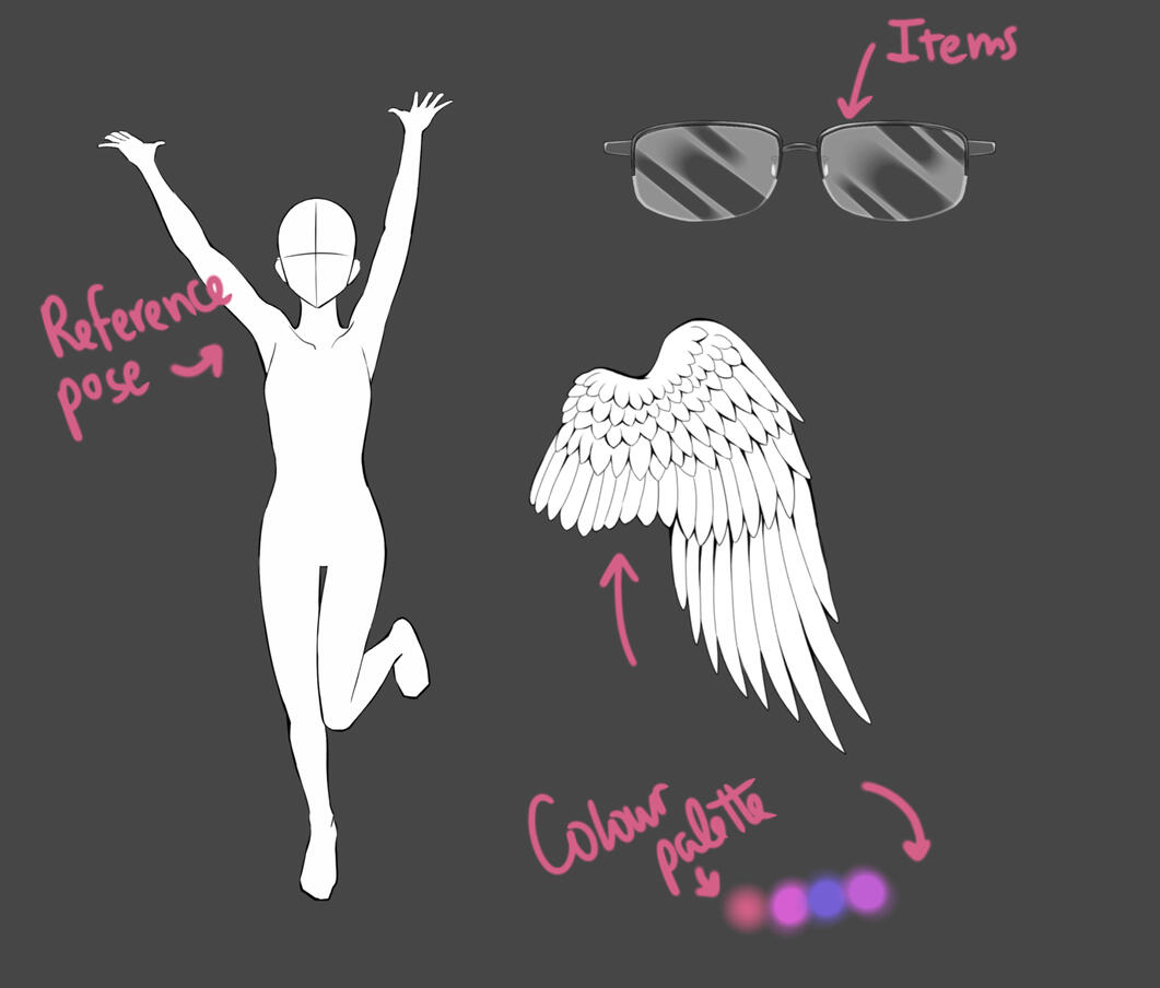 Reference images are very helpful in completing a commission successfully, and faster.That is why it is good that the minimum you send as Reference is 5 images that are:- A full body image of the character (if it is the Reference sheet that shows several angles much better).- The Facial expression (angry, dummy, sleepy... there can be many ways to express a feeling).- The Pose ( If their are standing, sitting, lying down, fighting...).- The Clothes (a headband, earrings, gloves, skirt...).- The Color Palette.